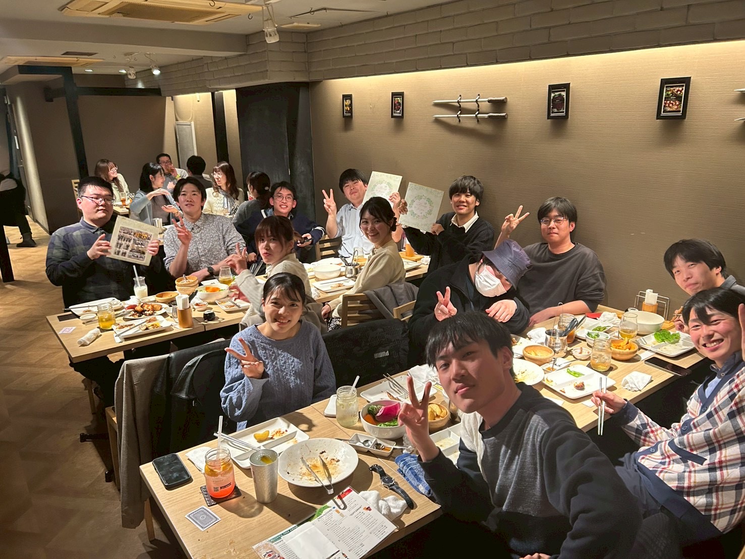 飲み会の最中、ご卒業された先輩方の宇那木さん、上山さん、Daiさんにサプライズで寄せ書きをプレゼントさせて頂いた様子。皆からの熱いメッセージに感動されていました。