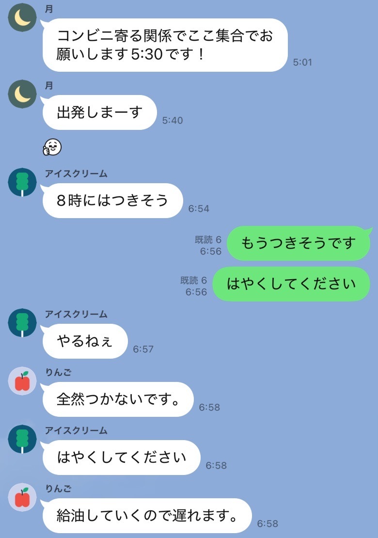 仙台出発は朝の5時半!前日、朝起きれないと不安そうだったりょうがさんはお弁当まで作って気合十分です!天気予報を見るとかなり恵まれた天気になりそうで皆心を躍らせます。どこかに晴れ男でもいたのでしょうか...?